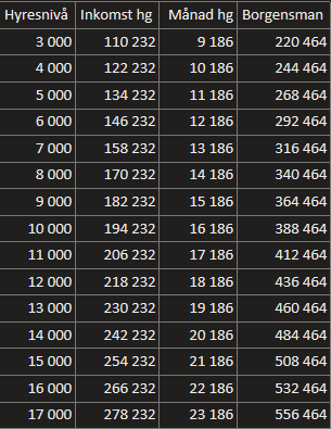 Exempel hyresnivåer/inkomst vid erbjudande Uppdaterad 2025-10-31 Exempel på hur vi jämför (nivåer 2025)